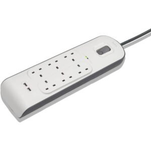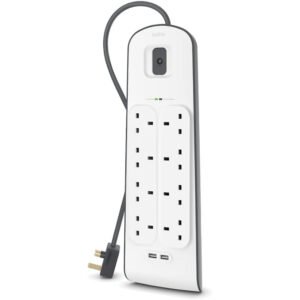 Belkin 8 Way/8 Plug Surge Protection Strip With 2 Meters Cord Length – Heavy Duty Electrical Extension Socket With 2 X 2.4 A Shared USB Ports