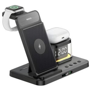Yesido DS22 5-in-1 Wireless Charger with Clock – Multi-Device Fast Charging Station for iPhone, Apple Watch, AirPods – Adjustable Stand with LED Light