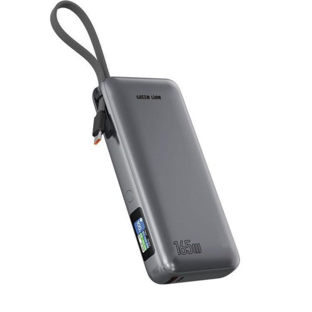 Powerology Thunderamp 30000mAh Power Bank with Intelligent TFT Screen, Ultra-Fast Charging, Multi-Device Charging, Laptop Charger, PD 140W – Gray