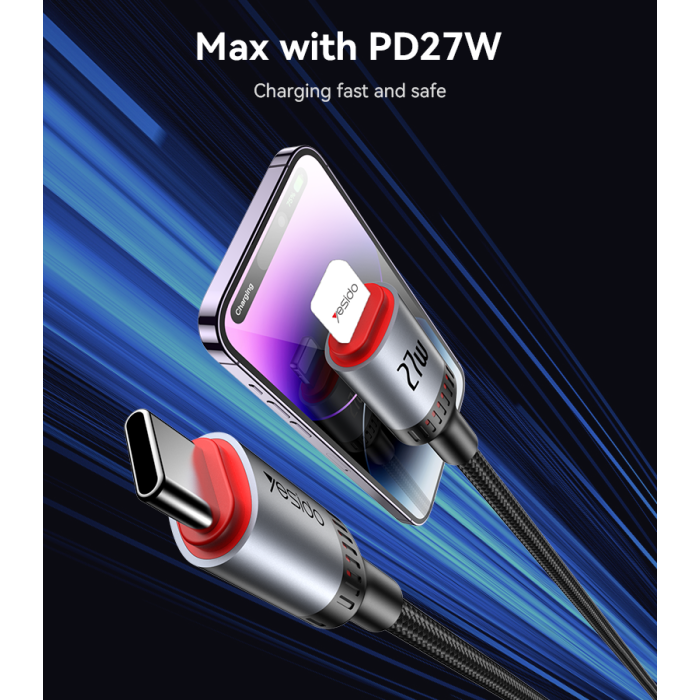Upgrade to the CA184 2M 27W Fast Charging Type-C to Lightning iPhone Cable for unmatched speed and resilience. It combines quick power, secure data, and robust design for hassle-free iOS life. Therefore, leave slow charges behind and embrace efficient connectivity. Order now for a cable that powers your day.