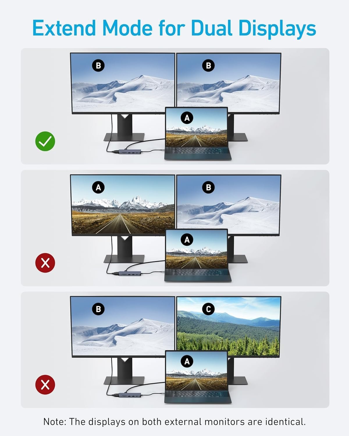 Hook up two 4K@30Hz monitors via HDMI or mix with VGA for triple displays on compatible laptops. Additionally, it supports mirroring or extending for enhanced workflows. Consequently, boost efficiency for video editing or presentations.