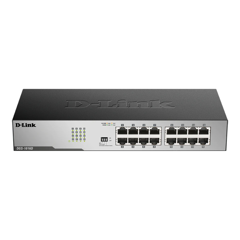 Yoast Meta Description: High-speed D-Link DGS-1016D 16-port unmanaged Gigabit switch with plug-and-play setup, durable metal casing, energy-efficient design, and reliable desktop networking