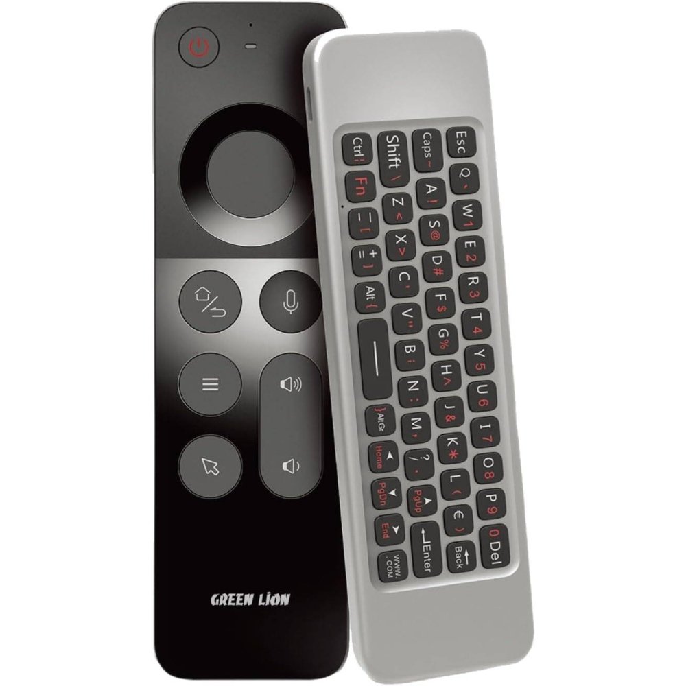 The Green Lion 4 in 1 Wireless Remote with Keyboard in black is a versatile controller that integrates air mouse, QWERTY keyboard, IR remote, and voice control. For instance, it simplifies navigation for TVs, PCs, and smart devices. Additionally, its 58-key QWERTY layout enables quick text input for searches or messaging. Furthermore, the air mouse offers precise cursor control, while the IR blaster supports universal device compatibility. Consequently, the built-in microphone allows voice commands like “play Netflix.” Powered by a 250mAh battery, it lasts up to 20 days after a 2-hour USB charge. Therefore, weighing only 100g and measuring 15x5x2cm, this compact black device with a USB receiver is perfect for home theater enthusiasts or remote workers.