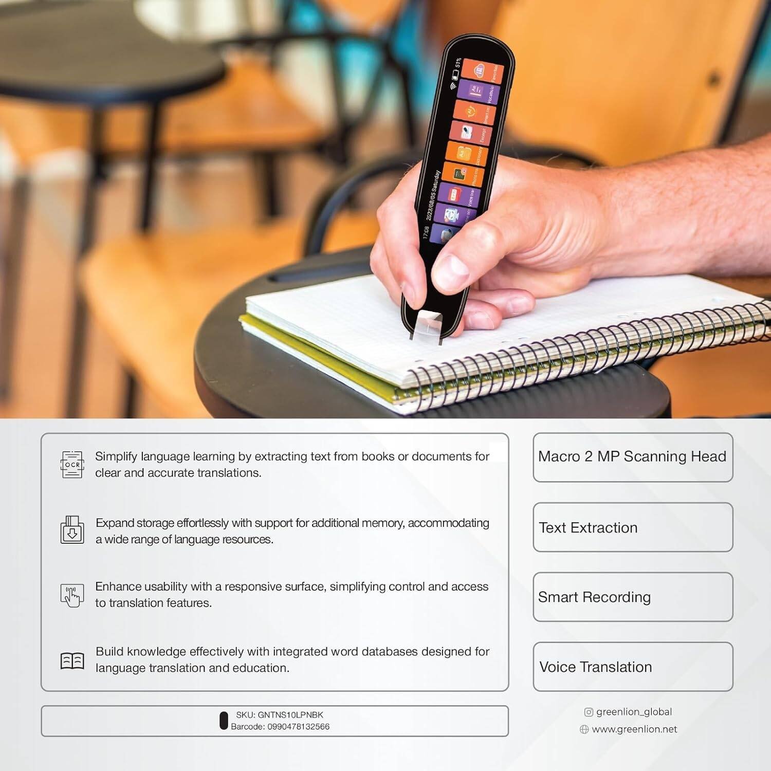 The Green Lion Translation Pen in black empowers global communication with its scanning, translation, and recording features. Perfect for learners or explorers, it makes languages accessible instantly. Translate smarter with Green Lion quality.