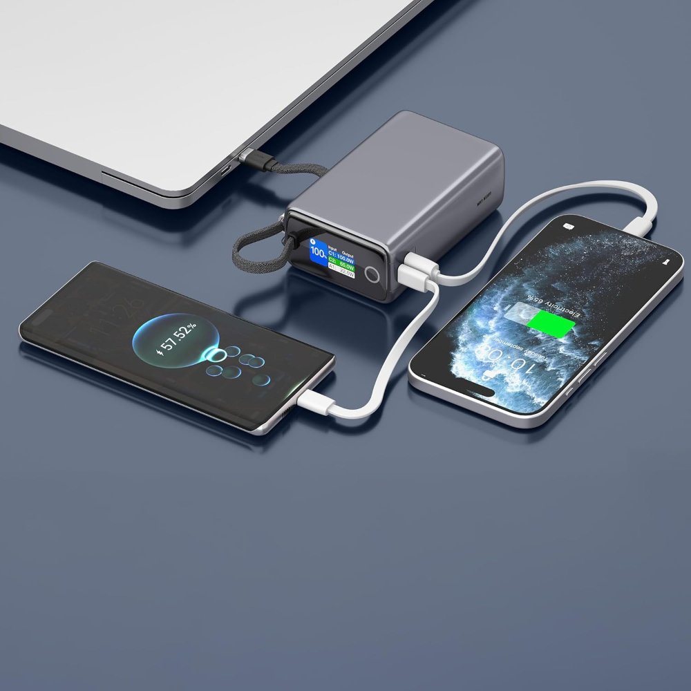 Compatible with a wide range of gear—Google Pixel, Samsung Galaxy, iPhone series, AirPods, laptops, tablets, and more—this power bank recharges itself quickly via PD input (up to 65W in supported modes). It’s perfect for professionals needing laptop power on the move, travelers staying connected during flights, students powering through study marathons, or anyone wanting a high-capacity, fast-charging solution with smart features and built-in cable convenience.