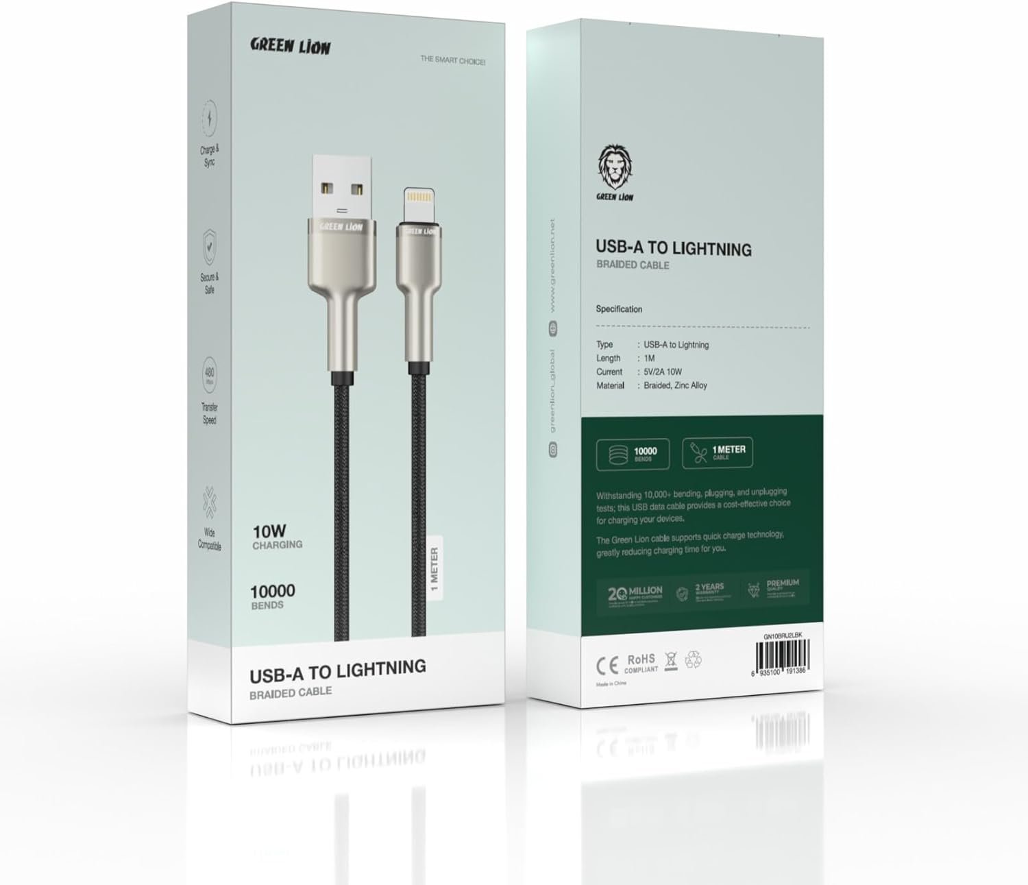 The Green Lion USB-A to Lightning Cable delivers speed, strength, and Apple-ready performance. Its braided zinc alloy build ensures reliable use. Upgrade your charging today. Check our cable tips for more