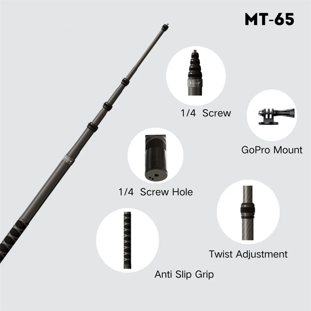 Extend your horizons with the Jmary MT-65 Carbon Fiber Selfie Stick. It combines 3m reach, featherlight strength, and versatile mounting for unmatched action filming. Therefore, capture the impossible without limits. Order now for a monopod that poles ahead.