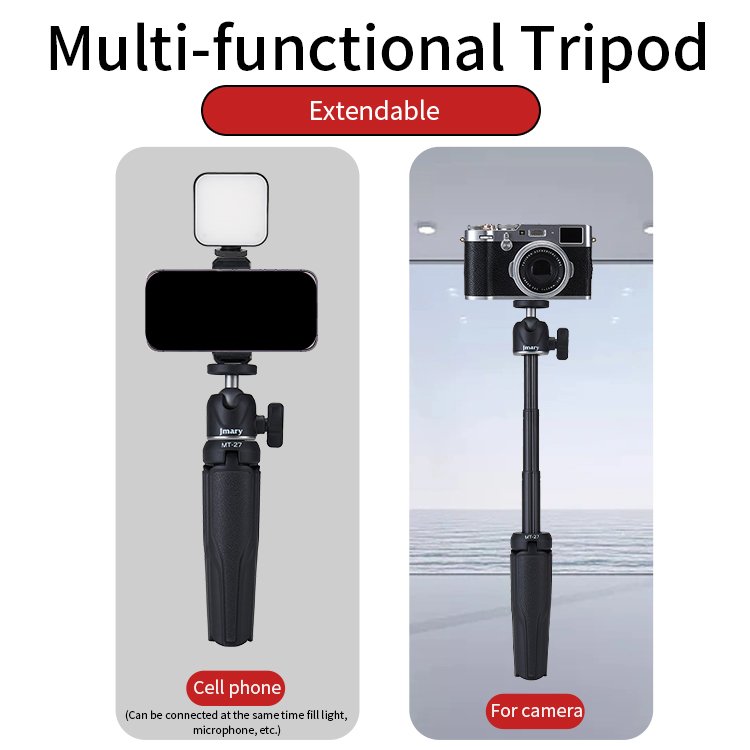 Capture intimately with the Jmary MT27 Mini Tripod Selfie Stick. It blends extension, secure mounting, and desktop versatility for endless creativity. Therefore, extend your reach in small spaces. Order now for a tripod that fits your pocket and your vision.