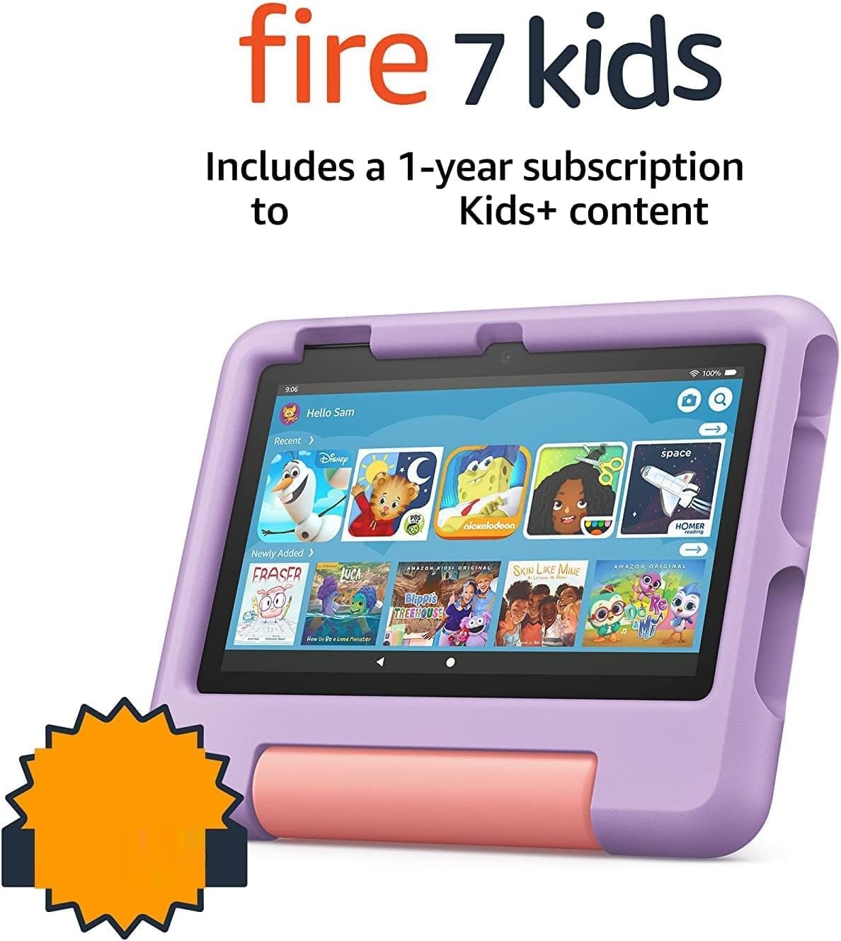 The Fire 7 Kids Tablet is a kid-friendly device designed for children ages 3-7, featuring a 7″ display and robust parental controls. First, it includes ad-free content through Amazon Kids+. Additionally, the included case protects against drops. Therefore, it’s perfect for safe learning and entertainment.