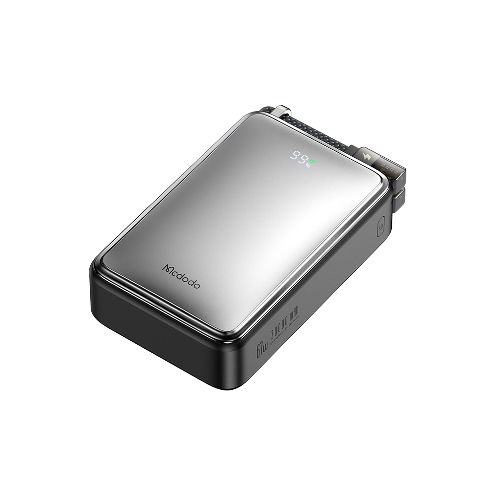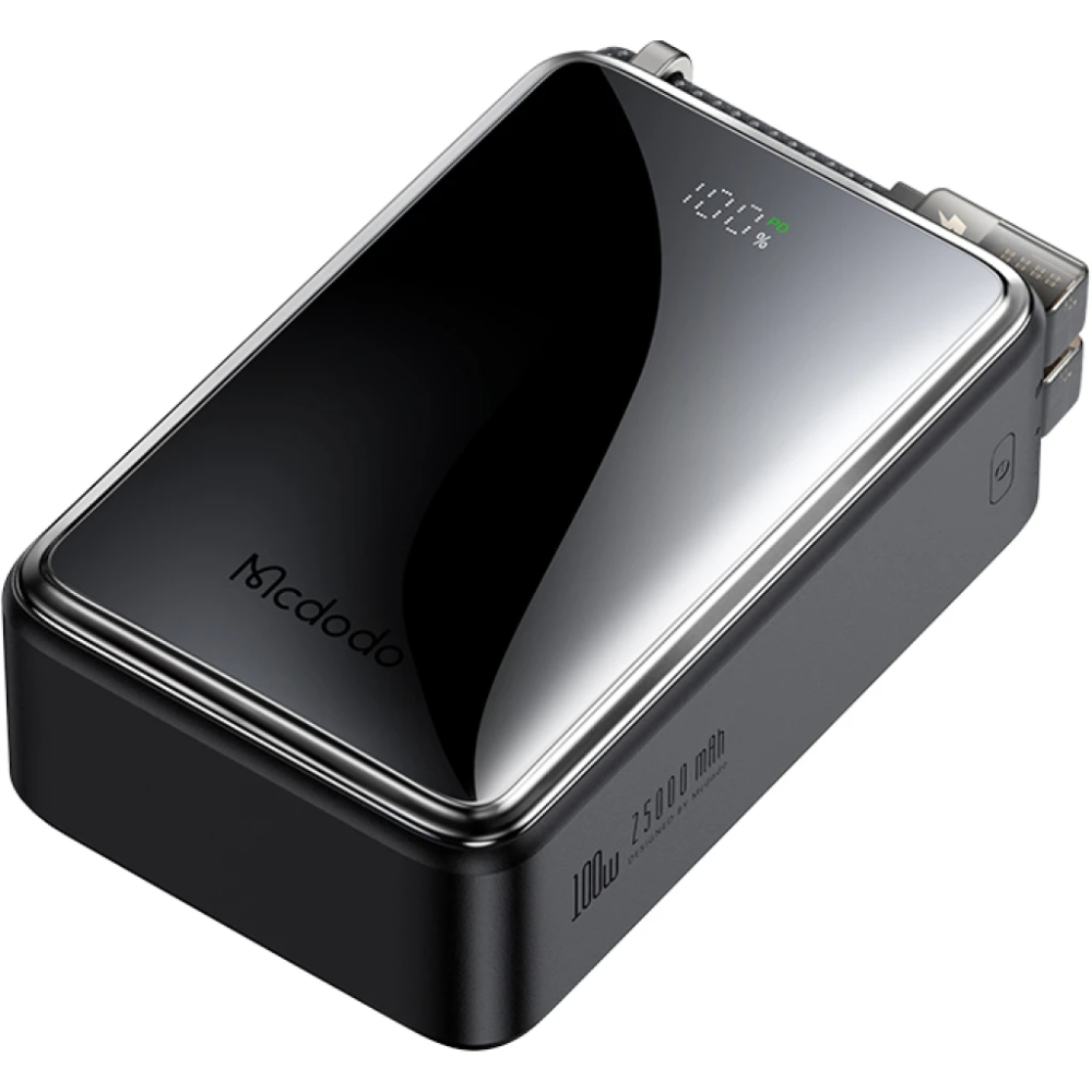 High-capacity charging shouldn’t mean bulky gear. Therefore, the Mcdodo MC-056 100W 25000mAh Power Bank, a powerhouse 100W 25000mAh power bank, delivers laptop-level power in an ultra-mini form. This 2C+1A device features a digital display and built-in cable for on-the-go convenience. Moreover, its PD 100W output makes it ideal for professionals or travelers needing reliable, fast energy.