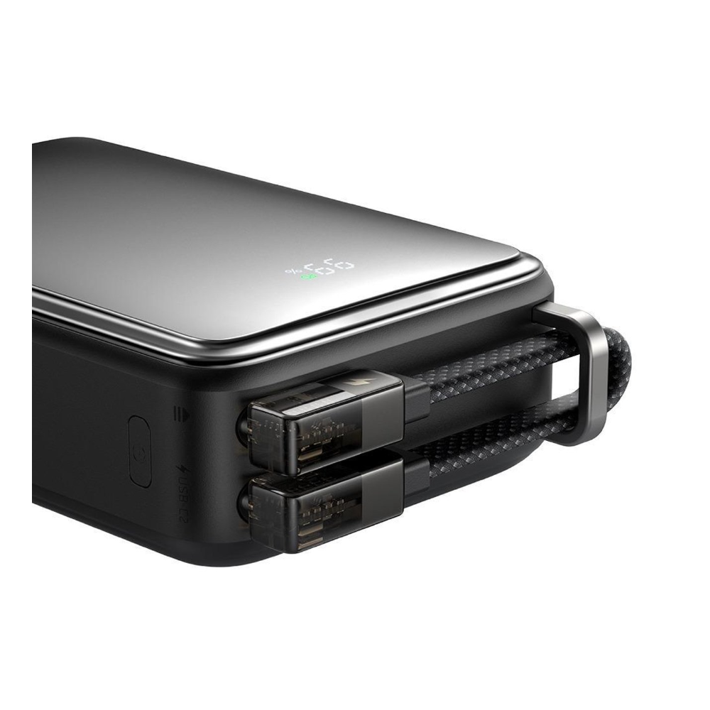 The LED screen displays exact battery levels and charging status at a glance, helping you plan usage. The built-in braided USB-C cable stores in a dedicated slot, preventing tangles and supporting 20W self-charging in ~2.5 hours. Furthermore, the E-Marker chip negotiates safe power, preventing overcurrent. Thus, it’s user-friendly for busy users.
