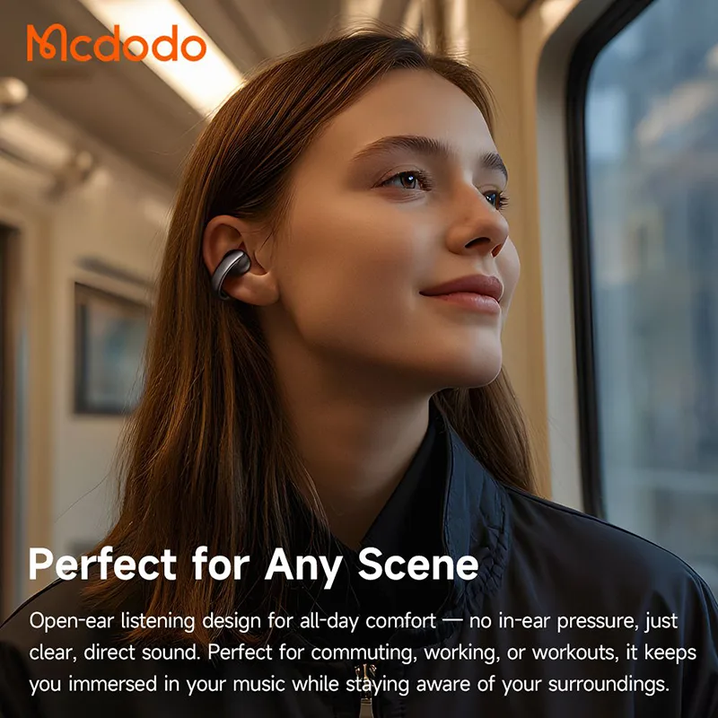 The Mcdodo HP 8160 redefines wireless audio for active lifestyles. For instance, jog safely while hearing cars. Alternatively, work from home with music and office chatter. With open-ear comfort, 24-hour battery, LED clarity, and IPX5 durability, they’re built for all-day awareness. Therefore, clip on, stay alert, and enjoy sound without compromise today.