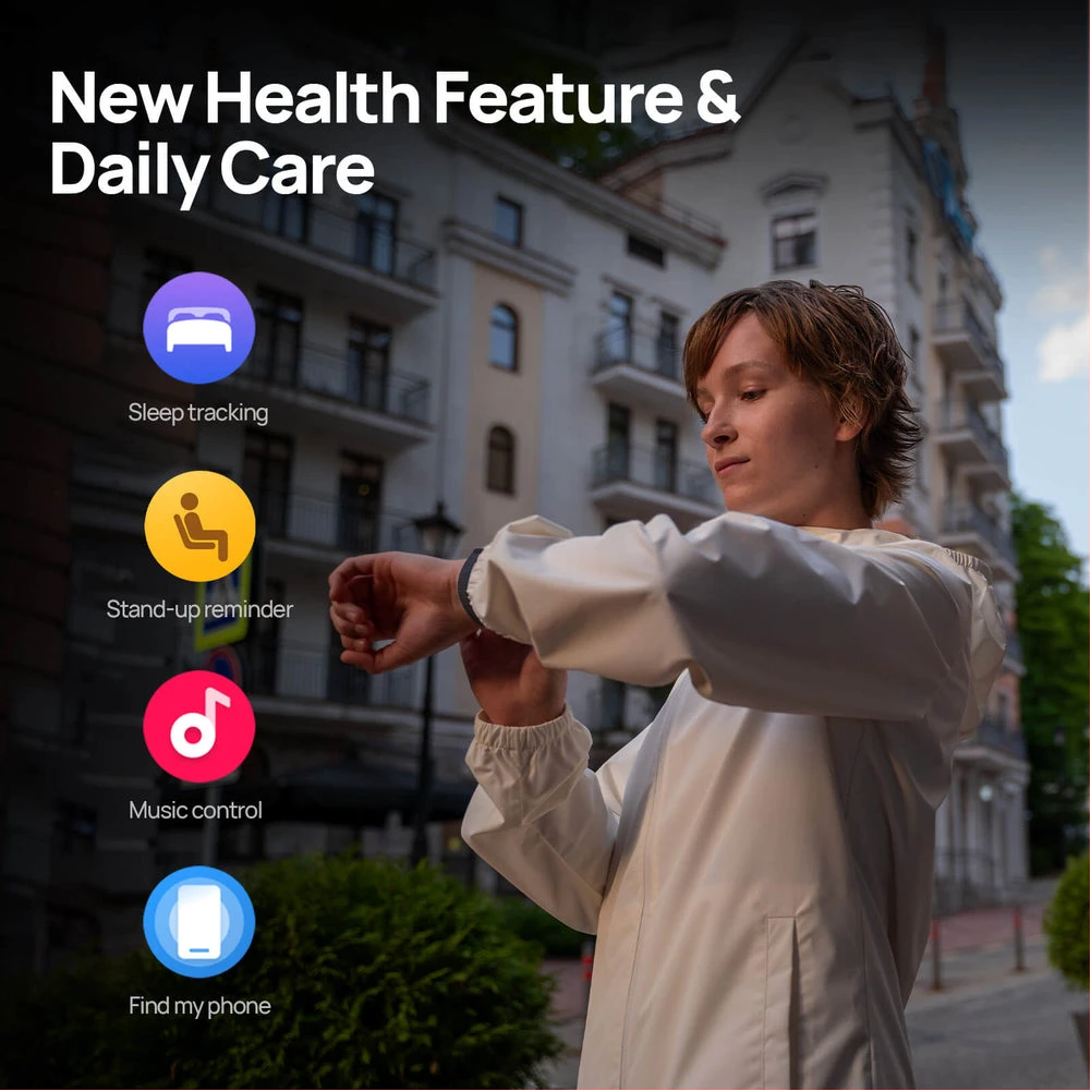 24/7 heart rate monitoring uses optical sensors for real-time vitals, while SpO2 and sleep analysis provide recovery insights. The watch auto-detects 6 sports from 150+ modes, logging calories, VO2 max, and stress levels. Therefore, gain personalized coaching without complexity, supporting everything from yoga to triathlons.