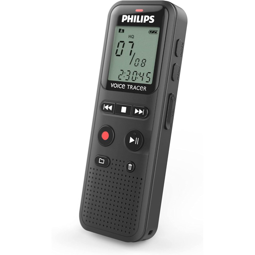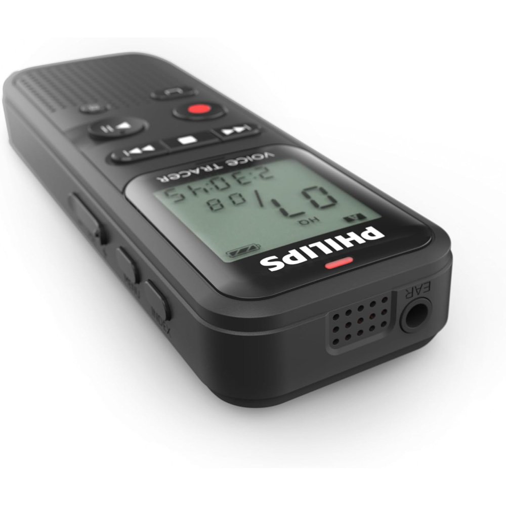 The Philips VoiceTracer DVT1160 is the perfect pocket-sized recorder for students, journalists, and professionals who need reliable, no-fuss audio capture. First, press the large red button once and it starts recording immediately—no menus, no delay. So, you never miss the start of a lecture, interview, or meeting. Moreover, Voice Activation mode turns the recorder on only when someone speaks, saving both battery and storage.
