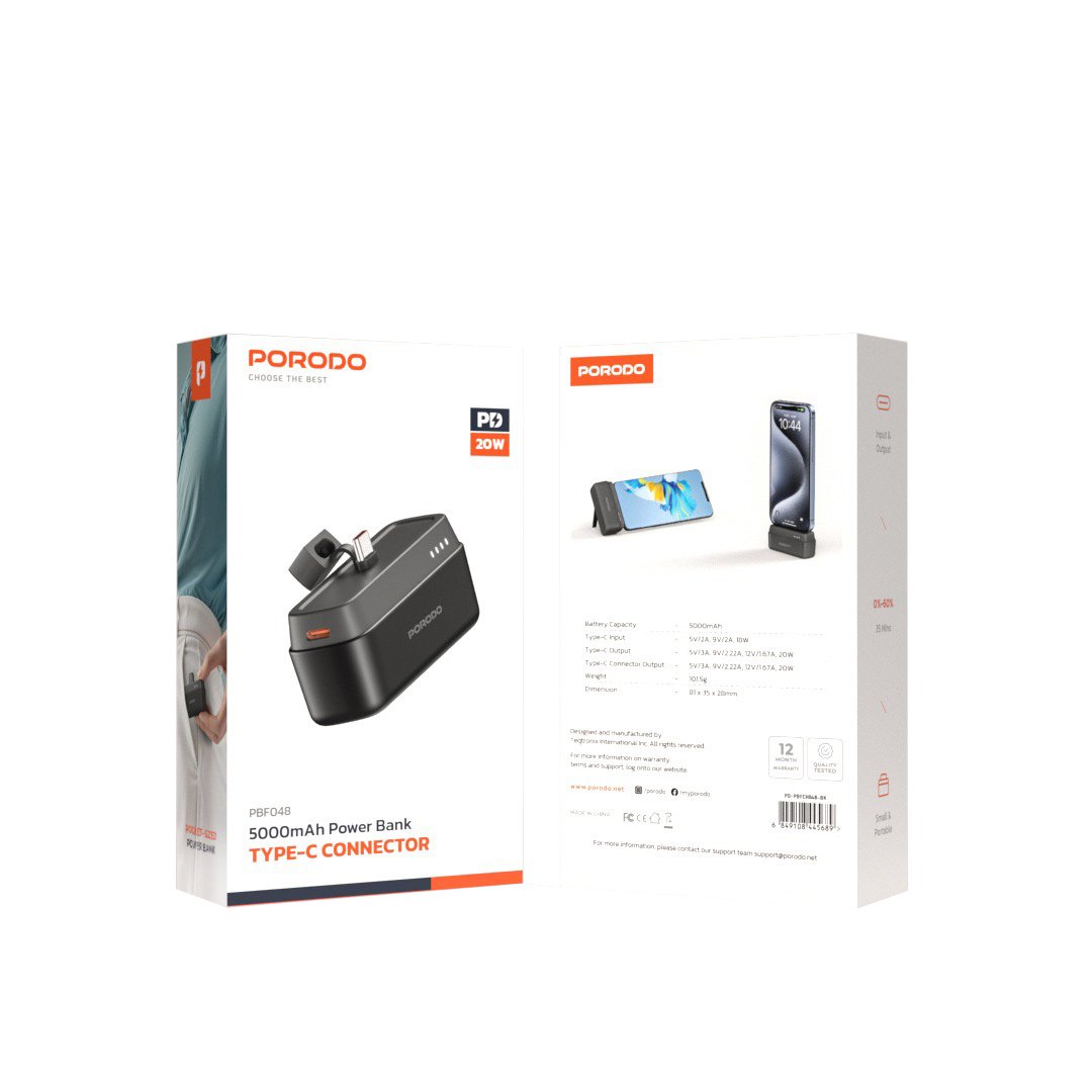 In summary, the Porodo 5000mAh Power Bank stands out as a reliable, efficient, and portable charging solution that blends speed, safety, and convenience. Therefore, elevate your mobile experience today by staying powered wherever life takes you.