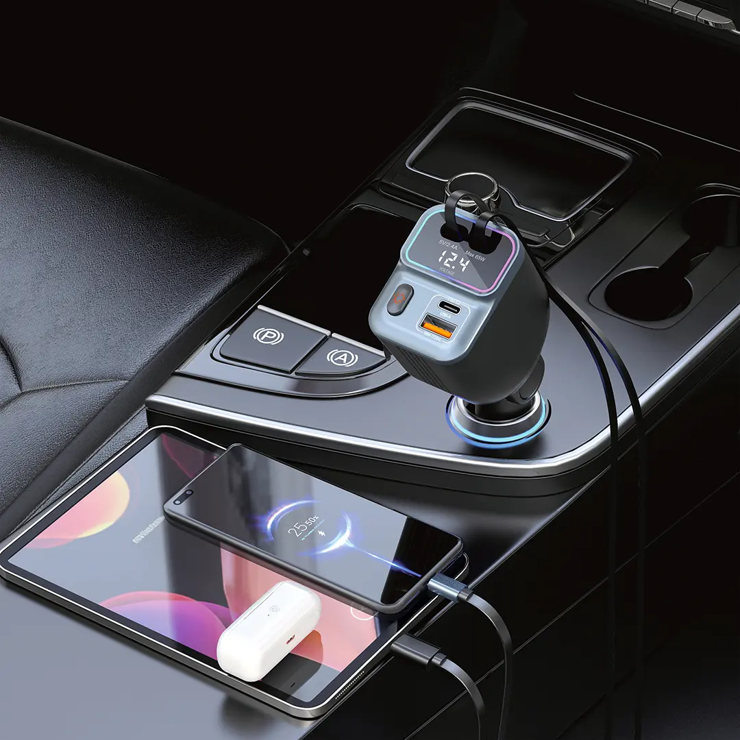 In today’s connected drives, car chargers must be fast, safe, and organized to power multiple devices without hassle. Consequently, the Porodo 65W Car Charger with Built-in Dual 80cm Retractable Cable & Real-Time Voltage Display, a premium Porodo 65W Car Charger, revolutionizes road power. This adapter features PD 45W on USB-C and QC 30W on USB-A, charging two devices simultaneously up to 65W total. For example, it boosts an iPhone to 50% in 30 minutes while powering a Galaxy. Moreover, the retractable cables eliminate clutter, and LED lights add style. Therefore, this charger isn’t just an accessory—it’s a smart solution for tangle-free commutes.