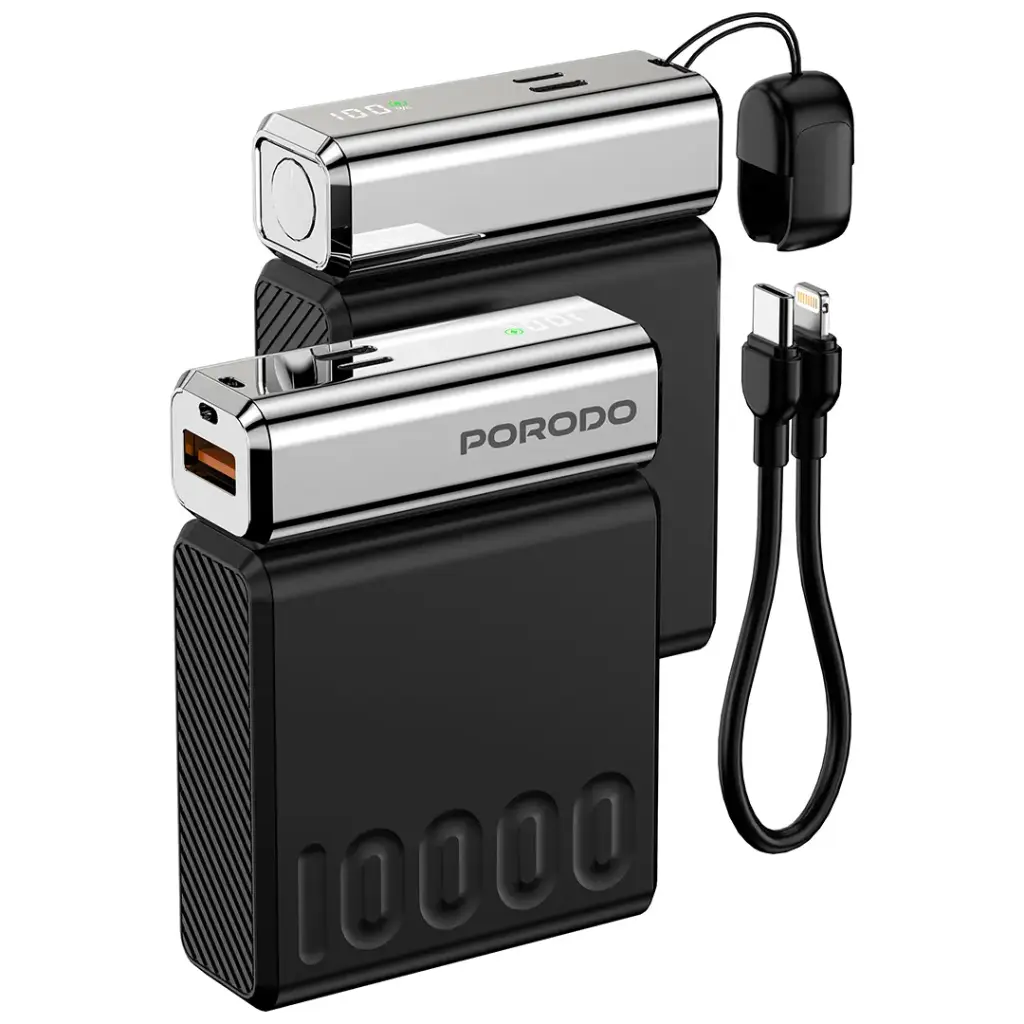 The Porodo Chrome Volt 10000mAh Power Bank in elegant black keeps your devices alive effortlessly. For instance, its robust capacity handles full charges for most phones. Moreover, the chrome-accented design adds a stylish touch to your essentials. As a result, you stay connected during travels or outages. Engineered with reliable components, this power bank endures frequent use confidently.