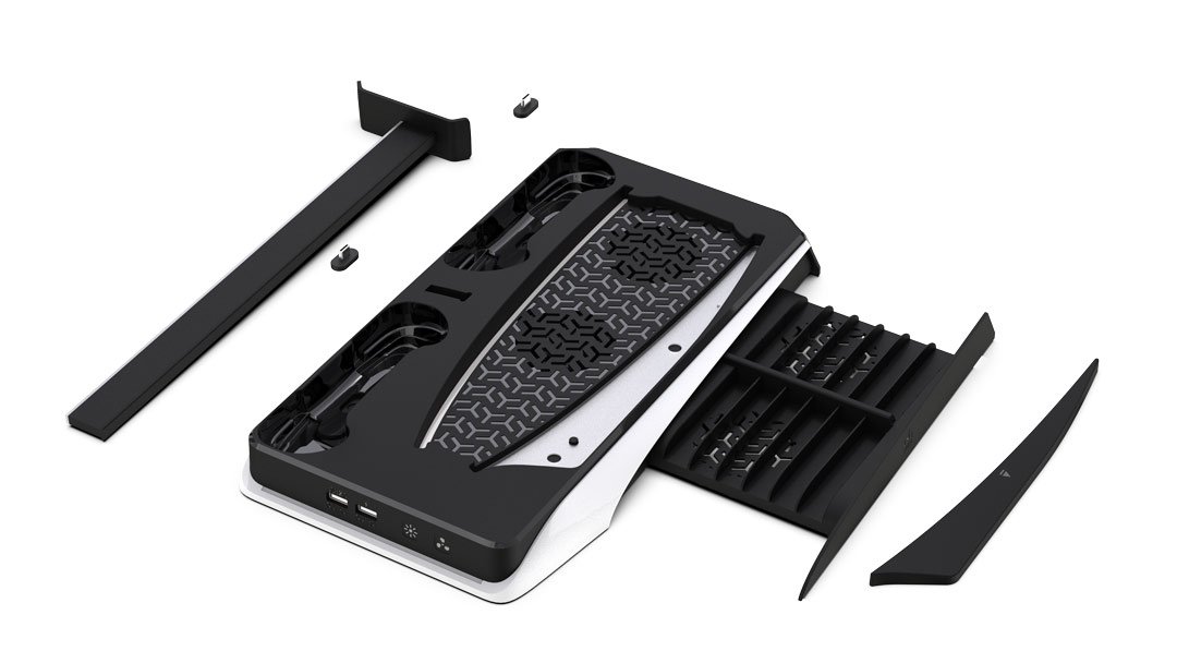 Elevate your gaming experience with the Porodo Gaming Multi-Function PS5 and Headphone Cooling and Charging Hub in sleek Black/White. Designed for passionate gamers who demand reliability, this innovative hub combines essential charging capabilities with smart cooling technology. For instance, it ensures your DualSense controller and headphones are always powered and cool. Consequently, you can focus on epic PS5 adventures or competitive play without worrying about battery drains or overheating.