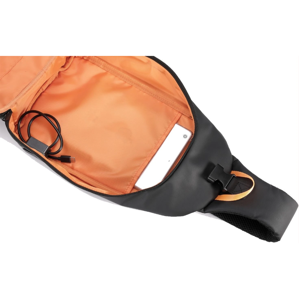 Gamers need bags that combine functionality, durability, and style for carrying essentials during commutes or events. Therefore, the Porodo Gaming Water-Resistant PU Sling Bag with USB-C Port in Black, a sleek gaming sling bag, delivers exactly that. This single-strap backpack features an integrated USB-C charging port for hassle-free power, protecting your phone or controller while you travel. For example, its water-resistant polyester with PU coating shields against rain or spills. Moreover, the magnetic closures and adjustable strap ensure easy access and comfort. Consequently, the Porodo isn’t just a bag—it’s a secure companion for gamers navigating daily adventures.