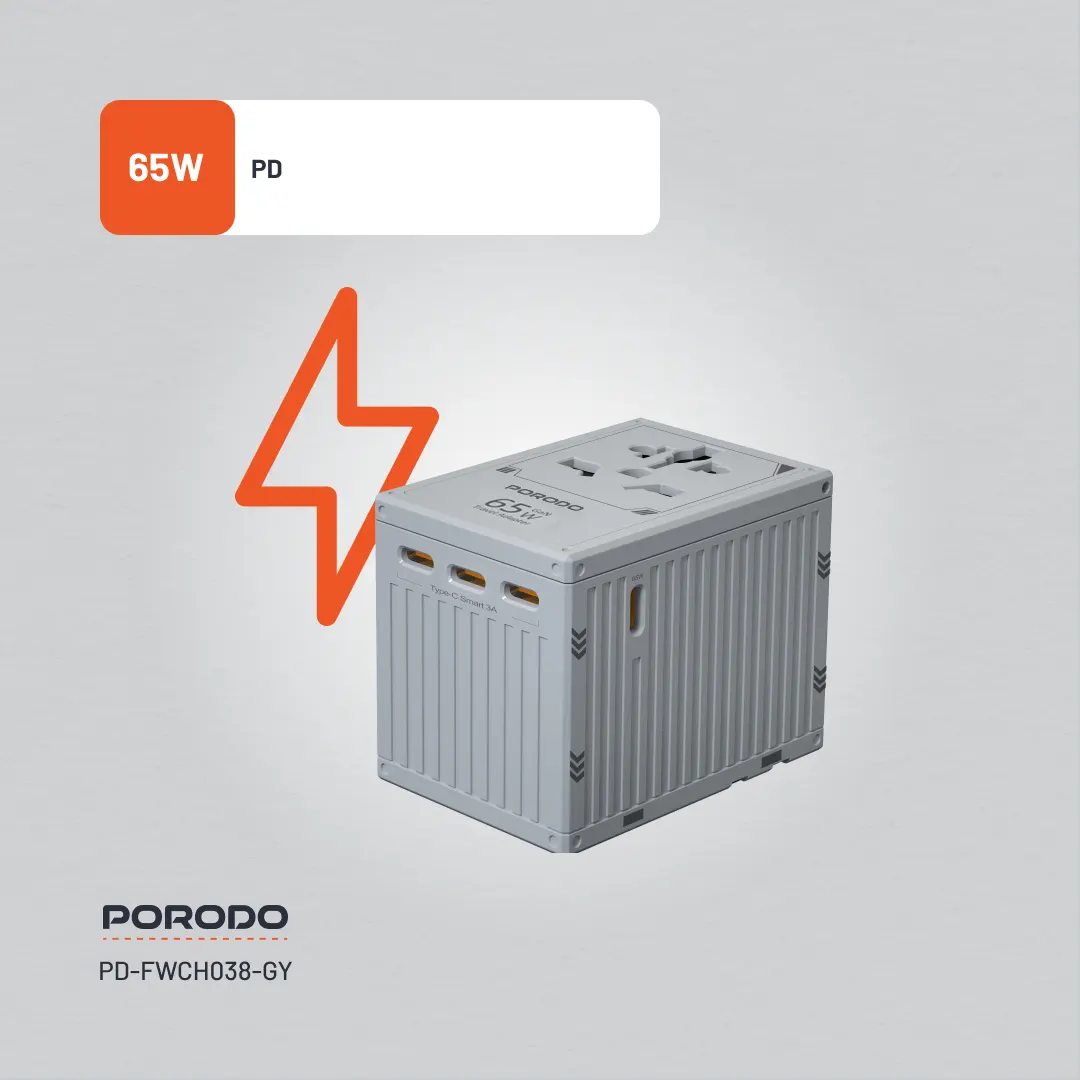 Porodo GaN 5-Port Travel Block Universal Charger – Grey