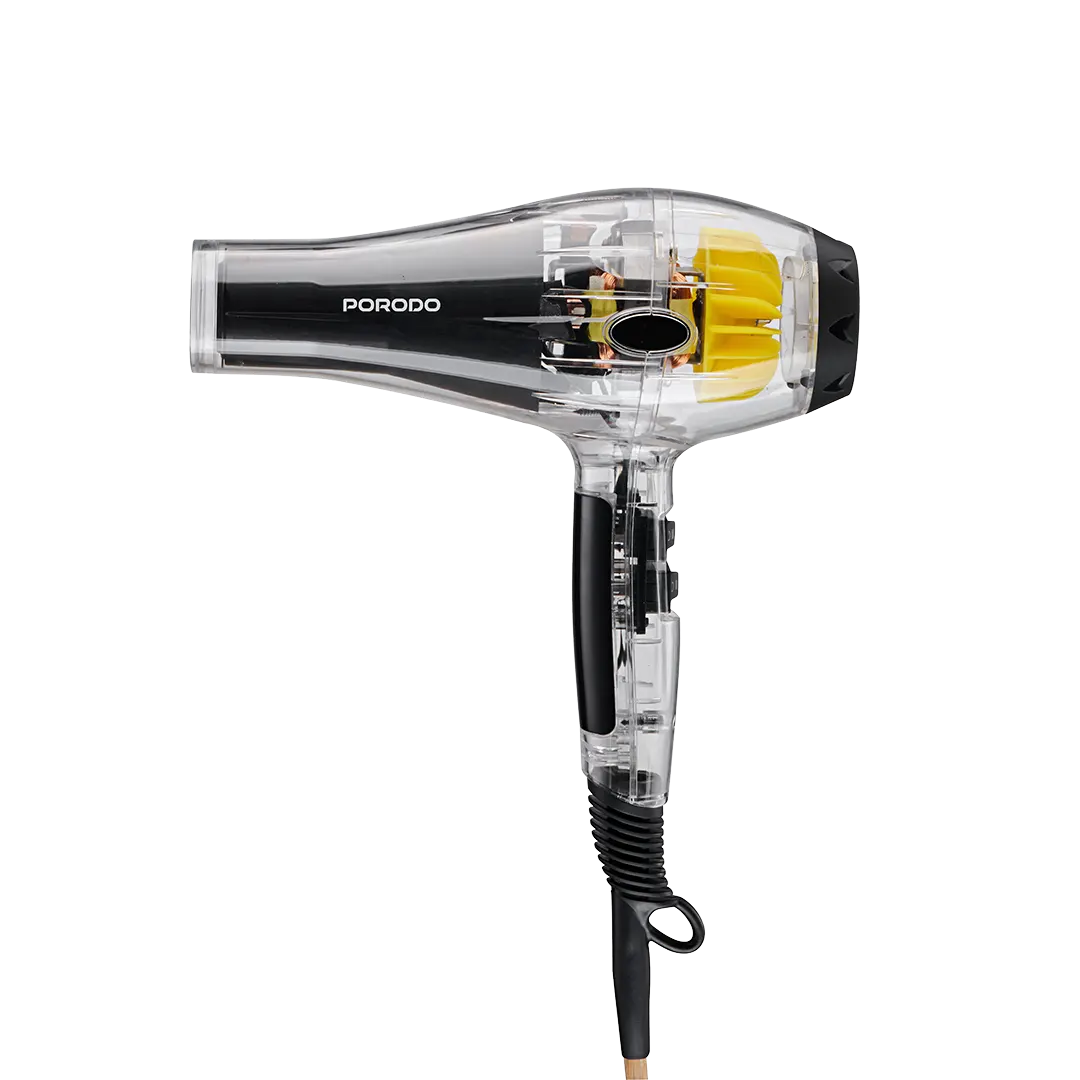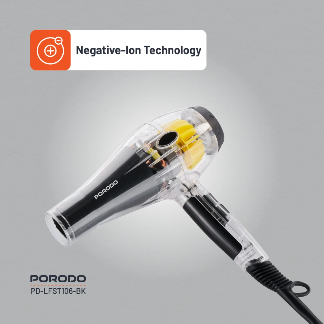 The Porodo Lifestyle Crystal Shell Hair Dryer – Black combines high performance and modern design to give you professional salon-quality styling at home. Built with a powerful yet energy-efficient motor, this dryer ensures quick, even drying while maintaining your hair’s natural shine and smoothness. Moreover, its transparent crystal shell design adds a stylish touch that sets it apart from traditional dryers.