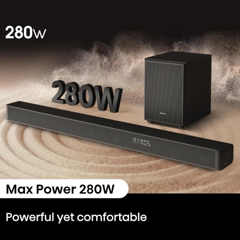 Firstly, the Porodo Soundtec Soundbar enhances home entertainment with its 2.1 channel system and wireless subwoofer for rich bass. Delivering 150W RMS power, it provides crystal-clear audio and optimized quality. Consequently, movies and music feel immersive and vibrant. The sleek design fits any TV setup perfectly. Moreover, Bluetooth 5.0 offers faster, longer-range wireless connectivity.