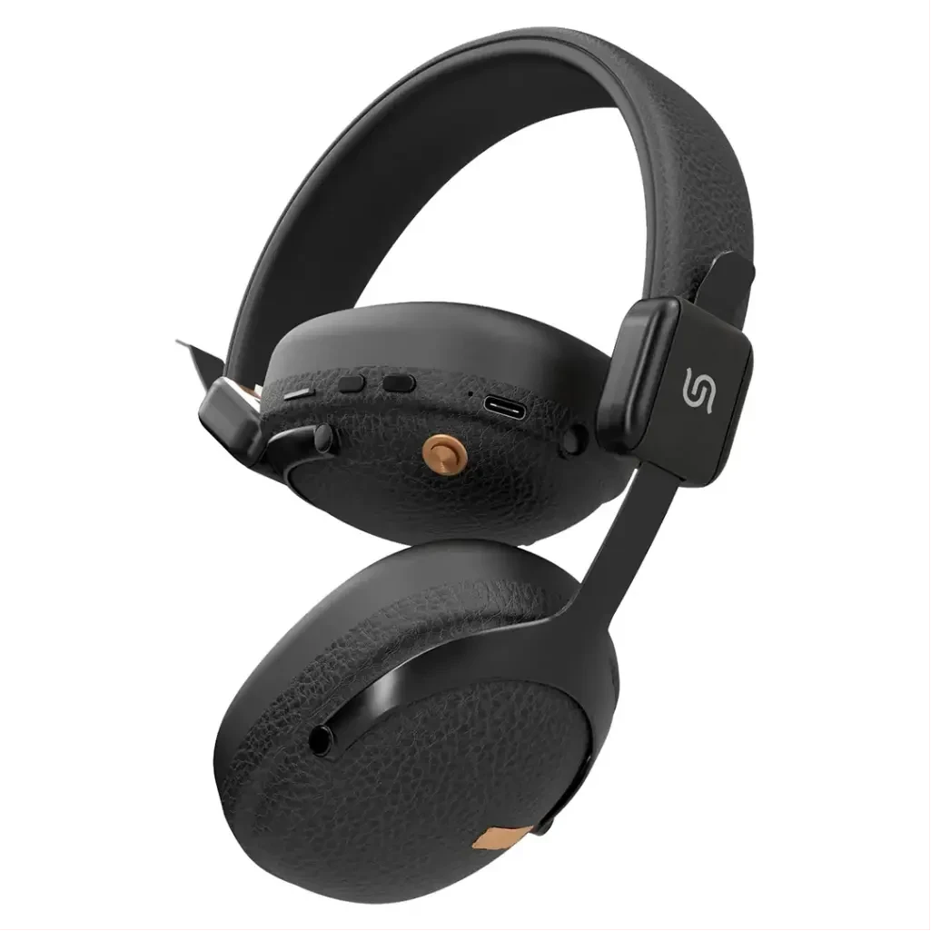 Weighing under 200g, the Porodo Onyx Sonic features an adjustable headband and soft ear cushions for extended wear without fatigue. The black plastic build resists sweat and scratches, with a matte finish for grip. Additionally, the foldable arms pack neatly into a case (included). Therefore, it’s built for durability in daily routines.