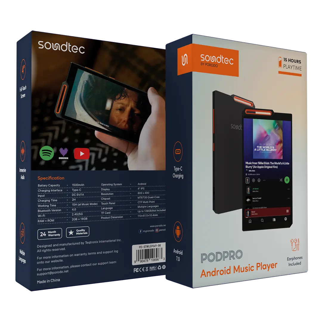 The Porodo Soundtec Pod Pro Android Music Player – Black is designed for audiophiles and music lovers who demand premium sound quality and portability. With its high-fidelity audio system, it delivers rich bass, crisp mids, and clear highs, ensuring your favorite tracks sound exactly as the artist intended.