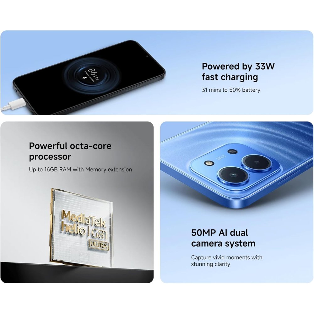 Equipped with 6GB RAM and a fast octa-core processor, the Redmi 15C Midnight Black flies through multitasking, social apps, and even heavier games without breaking a sweat. Enjoy generous 128GB built-in storage and expand further with a microSD card whenever you need more space.