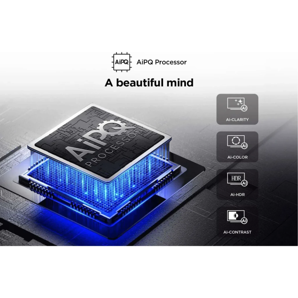Connect everything with multiple HDMI ports (including 2.1), USB, and Ethernet. Dual-band Wi-Fi ensures stable streaming, while Bluetooth 5.0 links to speakers, headphones, or controllers. The metallic bezel-less frame gives a premium, modern look that fits any room – wall-mount or stand it on your furniture.