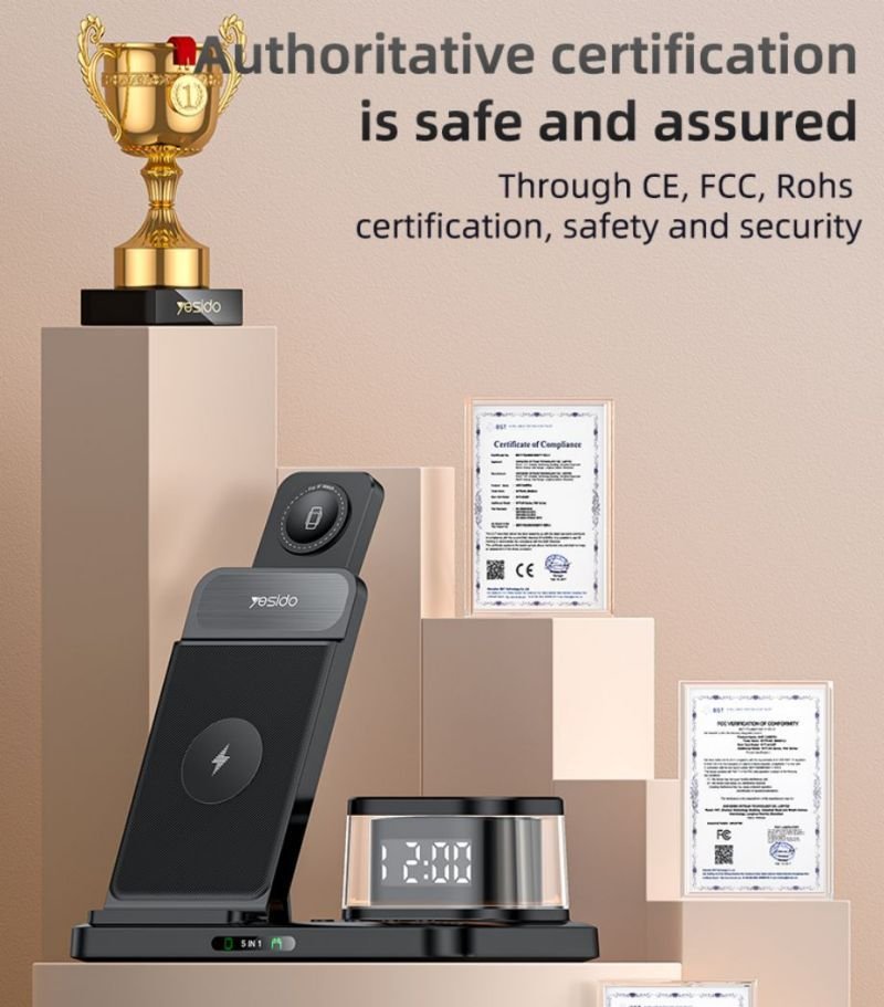 Transform chaos into calm with the Yesido DS22 5-in-1 Wireless Charger Station. It merges fast power, clock utility, and adjustable design for efficient multi-device life. Therefore, end cable sprawls and start your day powered. Order now for a station that does it all.